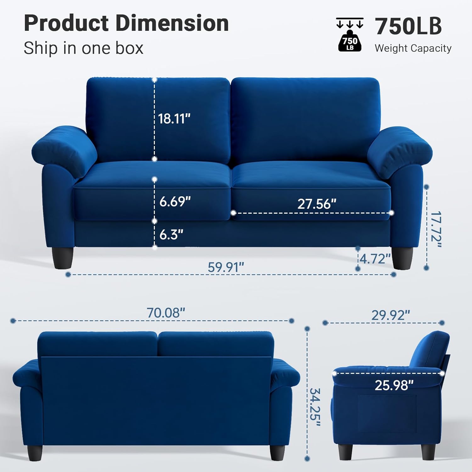 - Premium Materials: Upholstered in skin-friendly and breathable velvet fabric, this loveseat sofa offers a luxurious feel and exceptional comfort. The cushions are filled with high-quality cotton, ensuring they remain plump and supportive with a thickness ranging between 6.69 to 7 inches.