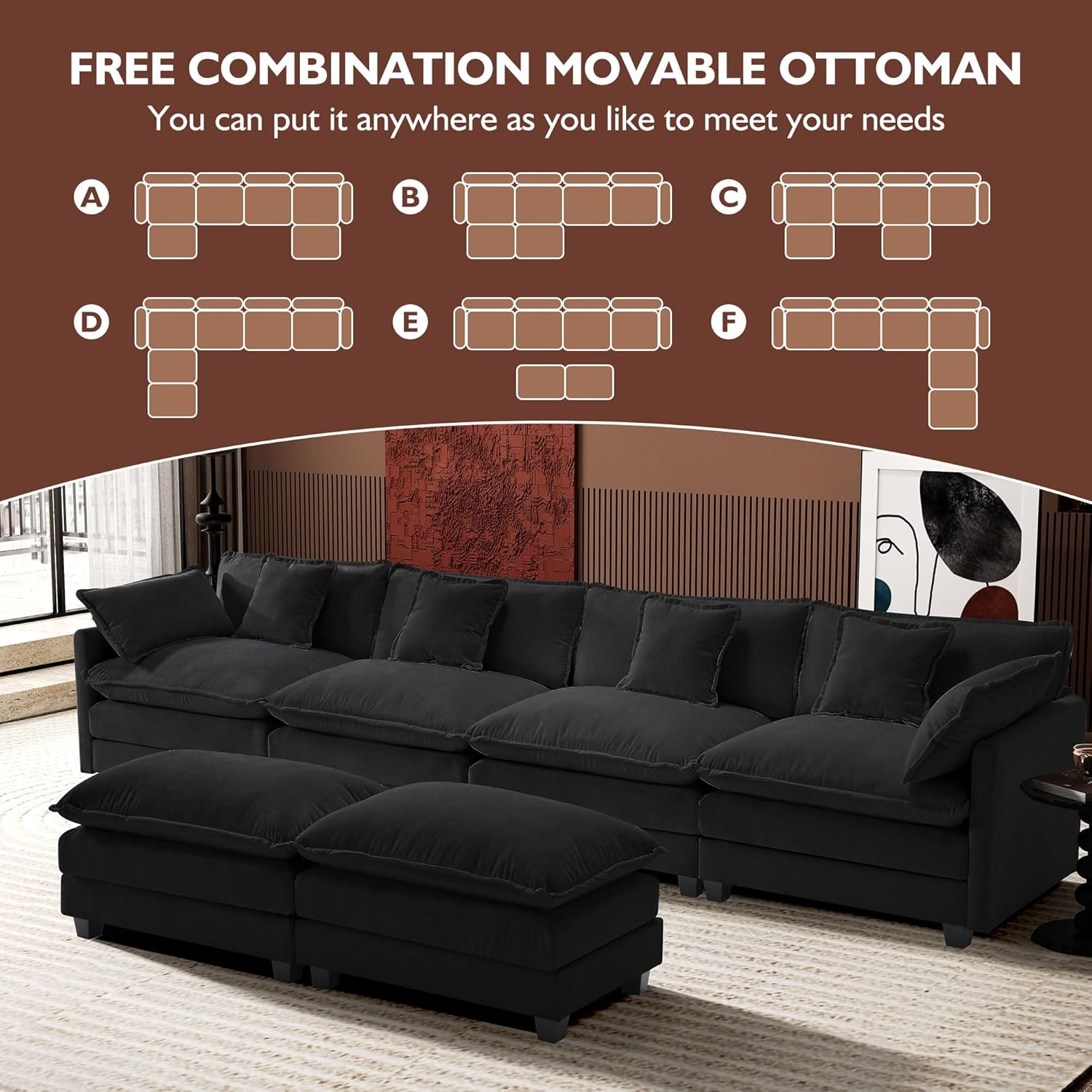 - 【Flexible Modular Sofa】: Each modular piece of the cloud couch can be moved easily, and it is convenient to allow you to arrange them into any desired shape based on your preferences and needs. Customize your own sofa to fit different spaces, offering flexibility and style for your home.