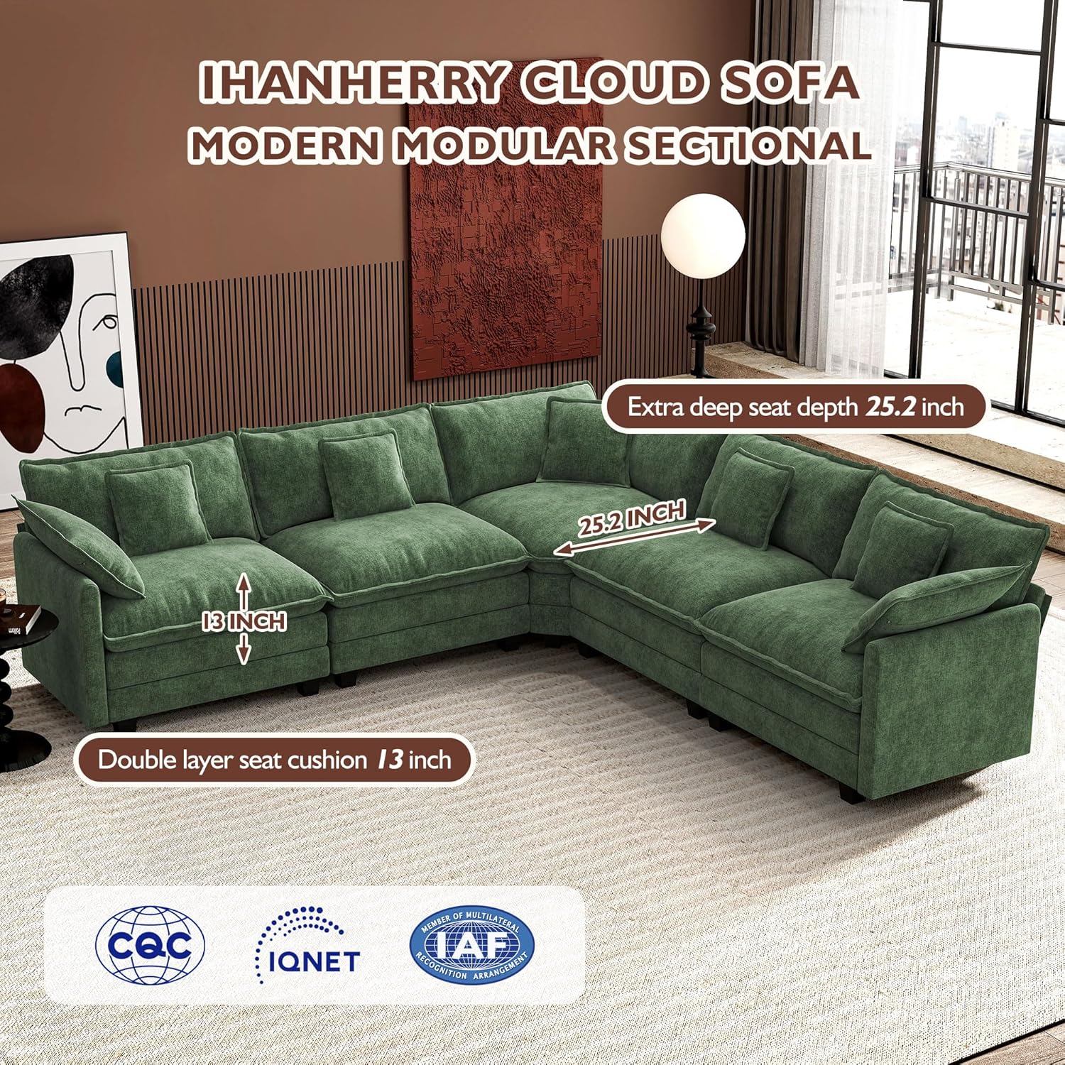- 【Sturdy Couch】The frame of cloud sofa is made of high-quality solid wood, making it more durable and sturdy. Each sofa can withstand a maximum weight of 440 pounds, exceeding that of most sofas. With a seat depth of 25.2", it is suitable for most body types and various sitting postures.