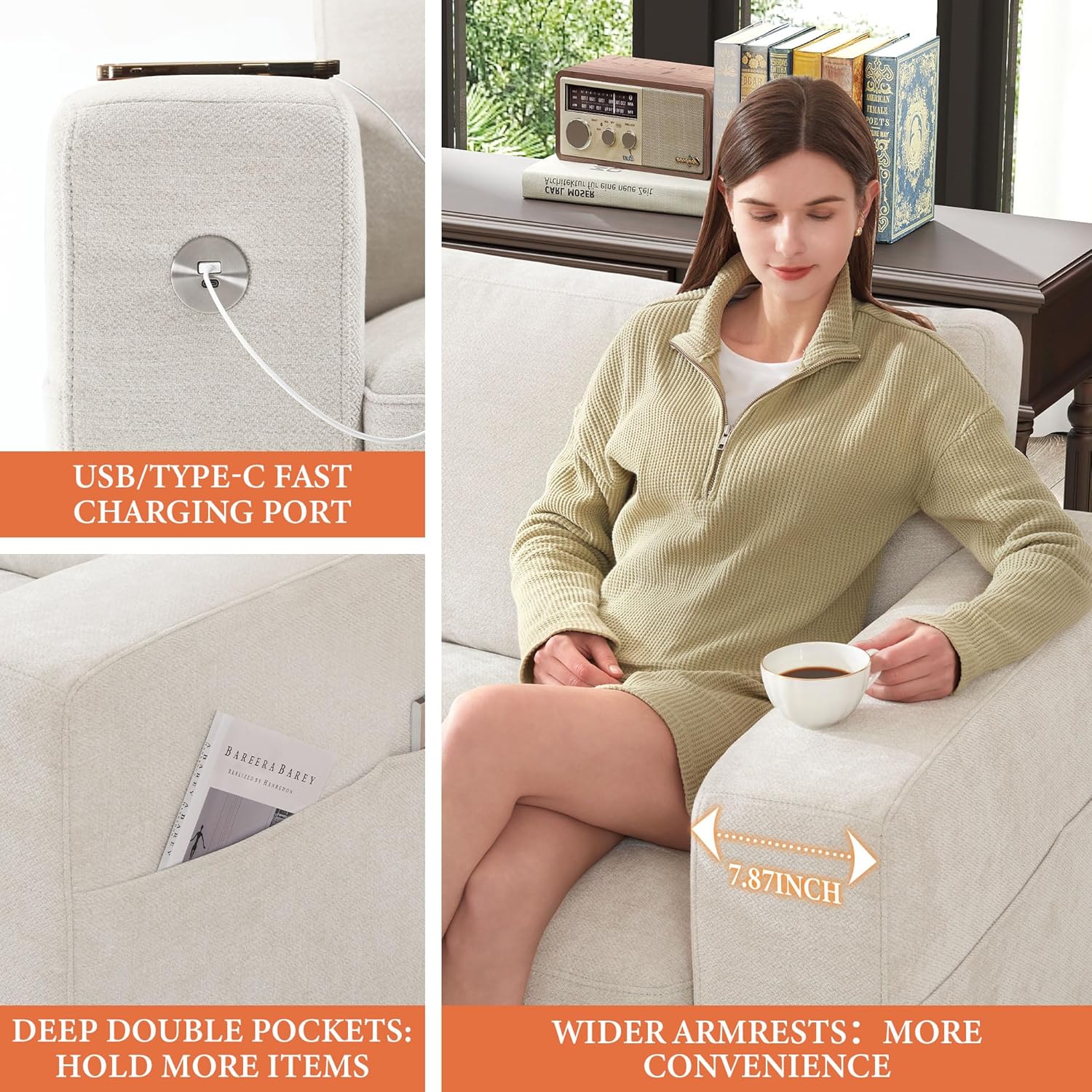 - 【Cloud Couch】The surface of the sofa is wrapped in high-quality chenille fabric, which is skin-friendly and breathable. The thick cushion is made of double-layer high-elastic sponge and fluffy fillment, making it more comfortable and soft. Experience the ultimate comfort of the sofa that feels like sitting on a cloud when resting.