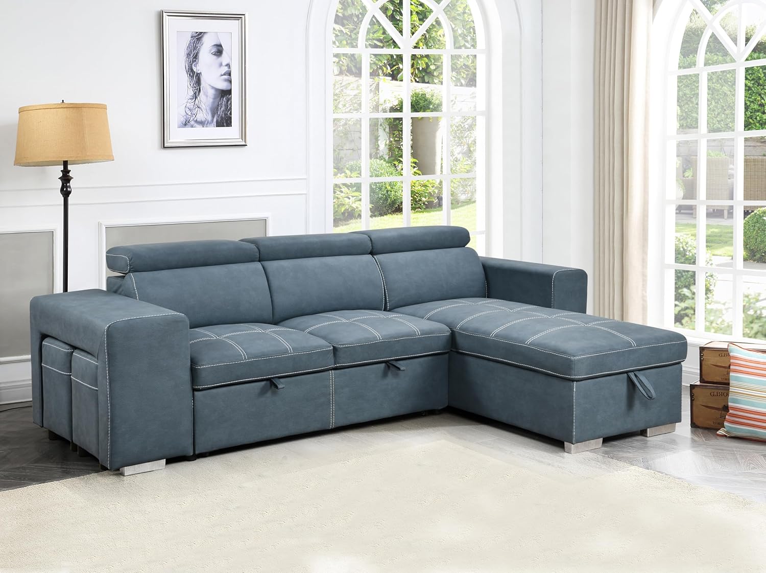 This multifunctional piece combines a sectional sofa, pull-out bed, and storage ottoman, offering unparalleled comfort and convenience. Relax on the plush microfiber upholstery, adjust the headrests for personalized support, and utilize the ottoman for clutter-free organization.